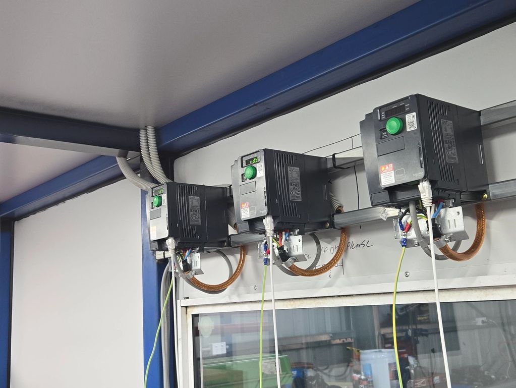 Three VFDs installed for a client's dyno set up to control his intake and extraction fans, allowing him optimize air flow depending on the size bike being worked on.